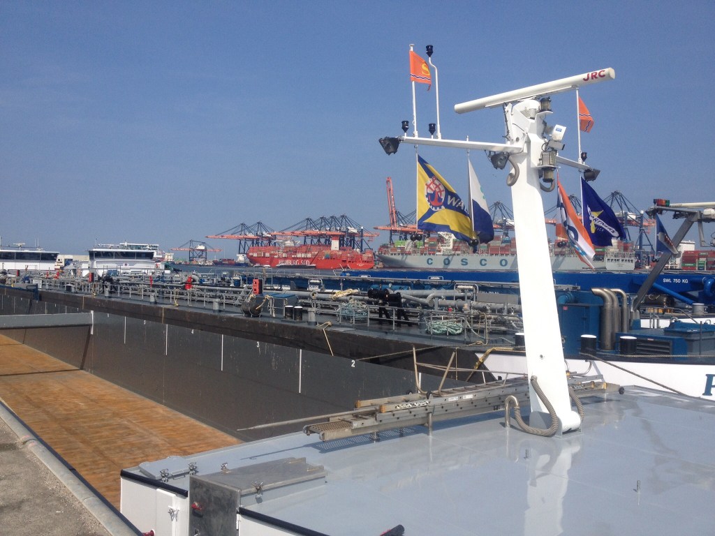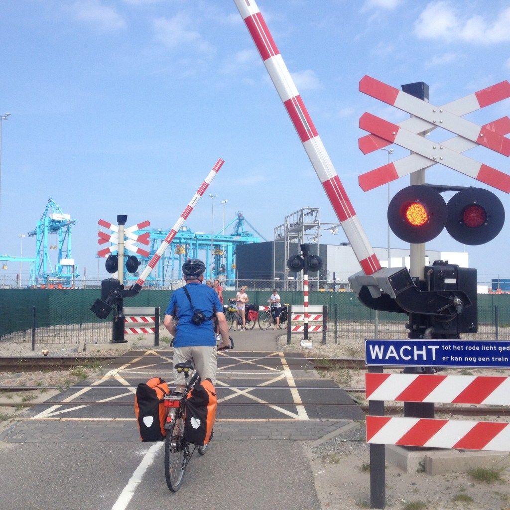Wir starten noch im Grünen aber schon mit Blick auf Maasvlakte, einer künstlich aufgeschütteten Insel, auf welcher sich eine großflächige Industrielandschaft angesiedelt hat und die mit zahlreichen Container Ent- und Beladevorrichtungen sowie Öltanks den nahegelegenen Hafen Rotterdam zum derzeit größten Europas macht.