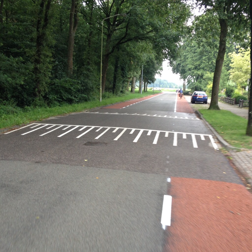 Was uns den ganzen Weg durch Holland aufgefallen ist, sind die besonderen Verkehrsführungen. Fußgänger und insbesondere Radfahrer werden klar als vollwertige Verkehrsteilnehmer gesehen bzw. sogar bevorzugt. So sind die meisten Straßen mit beidseitigen Fahrradwegen ausgestattet und sogenannte Drempel – angebracht in bestimmten Abständen – verhindern ein rasantes Autofahren. Kommt man in einen Kreisverkehr fährt man als Radfahrer automatisch in eine geschützte Zone, ähnlich einem Fußgängerüberweg.