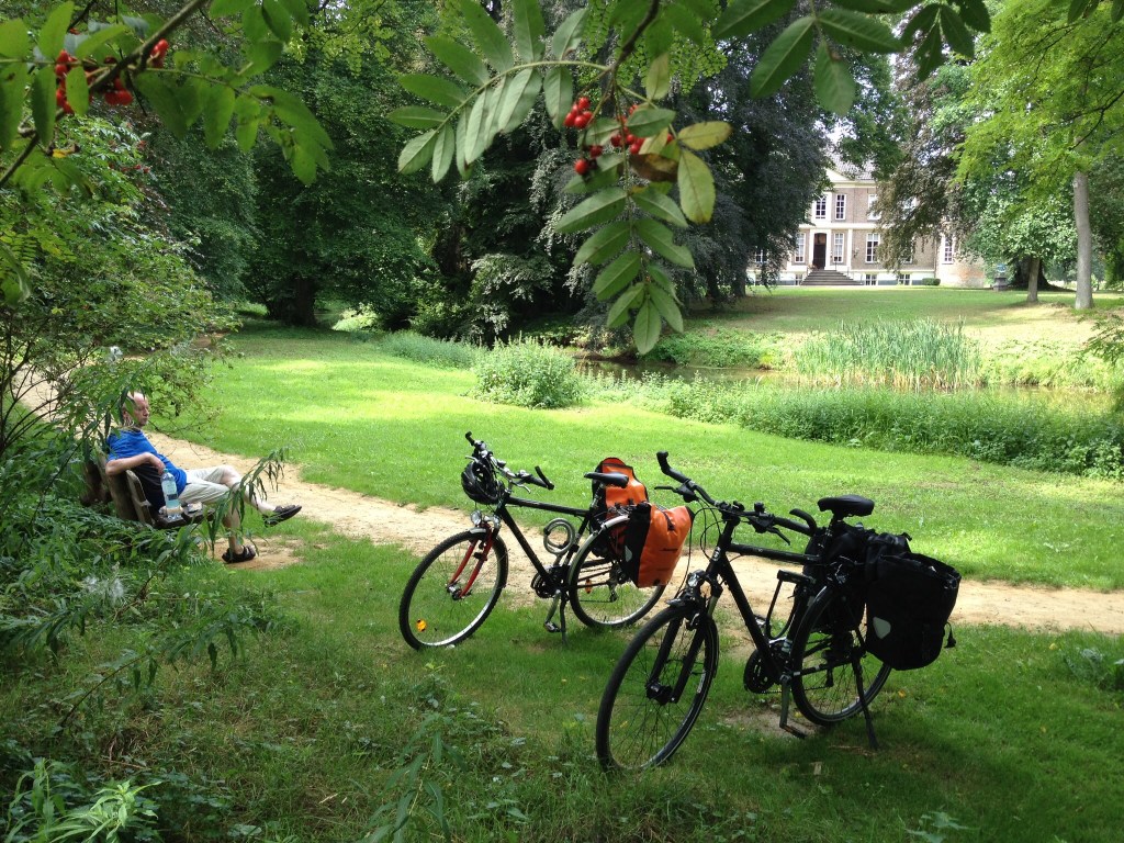 Am nächsten Tag finden wir glücklicherweise in Haaksbergen ein Geschäft, in dem es ein Kettenschloß gibt, so dass wir die Kette notdürftig ‘flicken’ können. Ich hoffe, dass sie bitte noch die 15 km bis zum Bahnhof Hengelo hält.